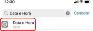 Na busca, digite “Data e Hora” e acesse essa opção.