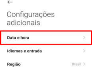 Abra as “Configurações” do seu celular, selecione a opção “Configurações adicionais” e acesse “Data e Hora”.