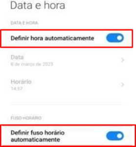 Ative as opções de data, hora e fuso horário automáticos.