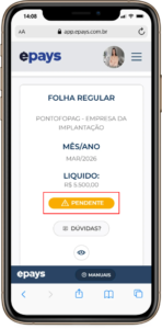 Após localizar o holerite dentro do menu, clique na opção “PENDENTE” para visualizar os detalhes do recibo.