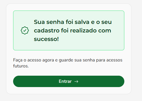 Após criar a senha, o sistema exibirá a mensagem “Senha criada com sucesso”.